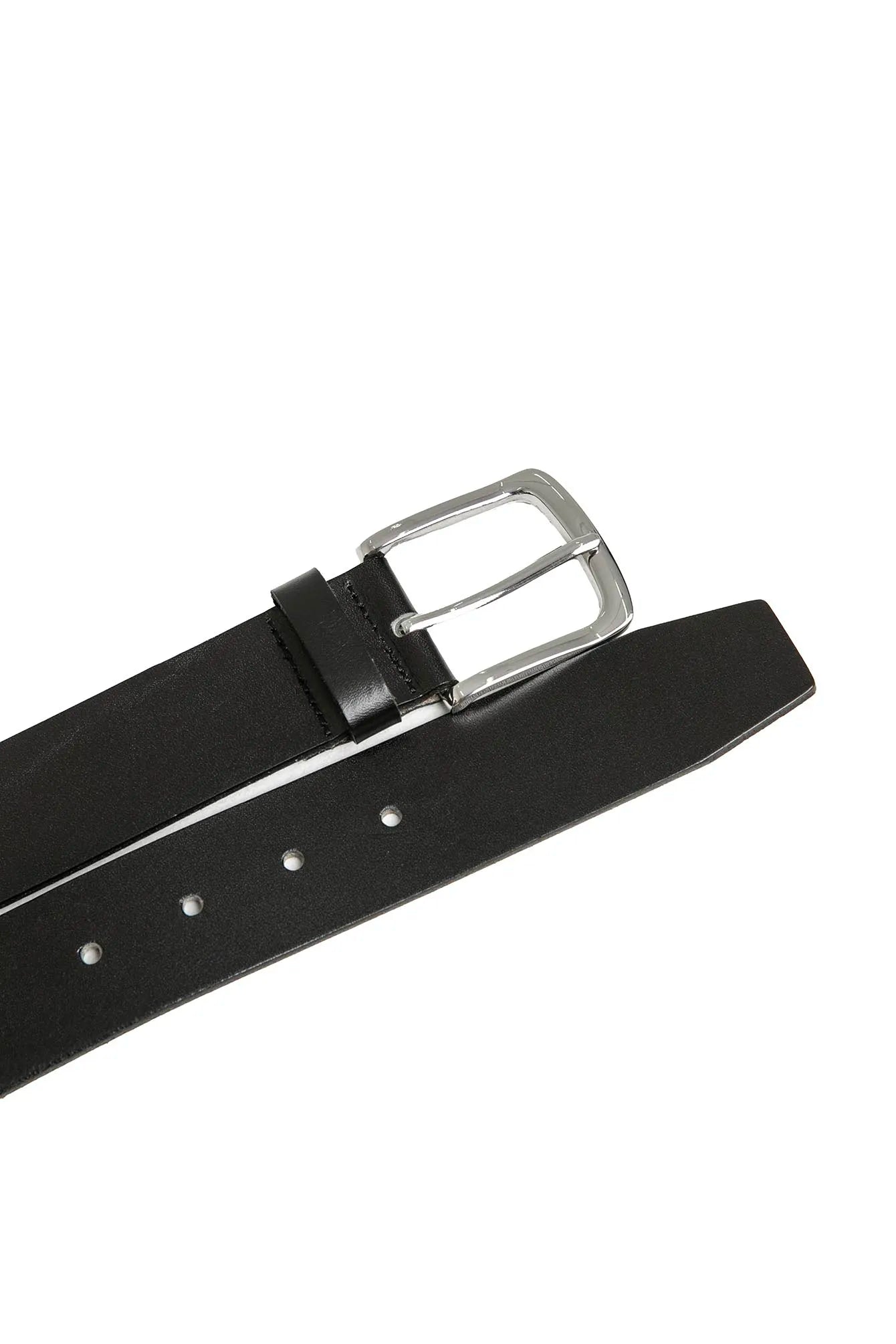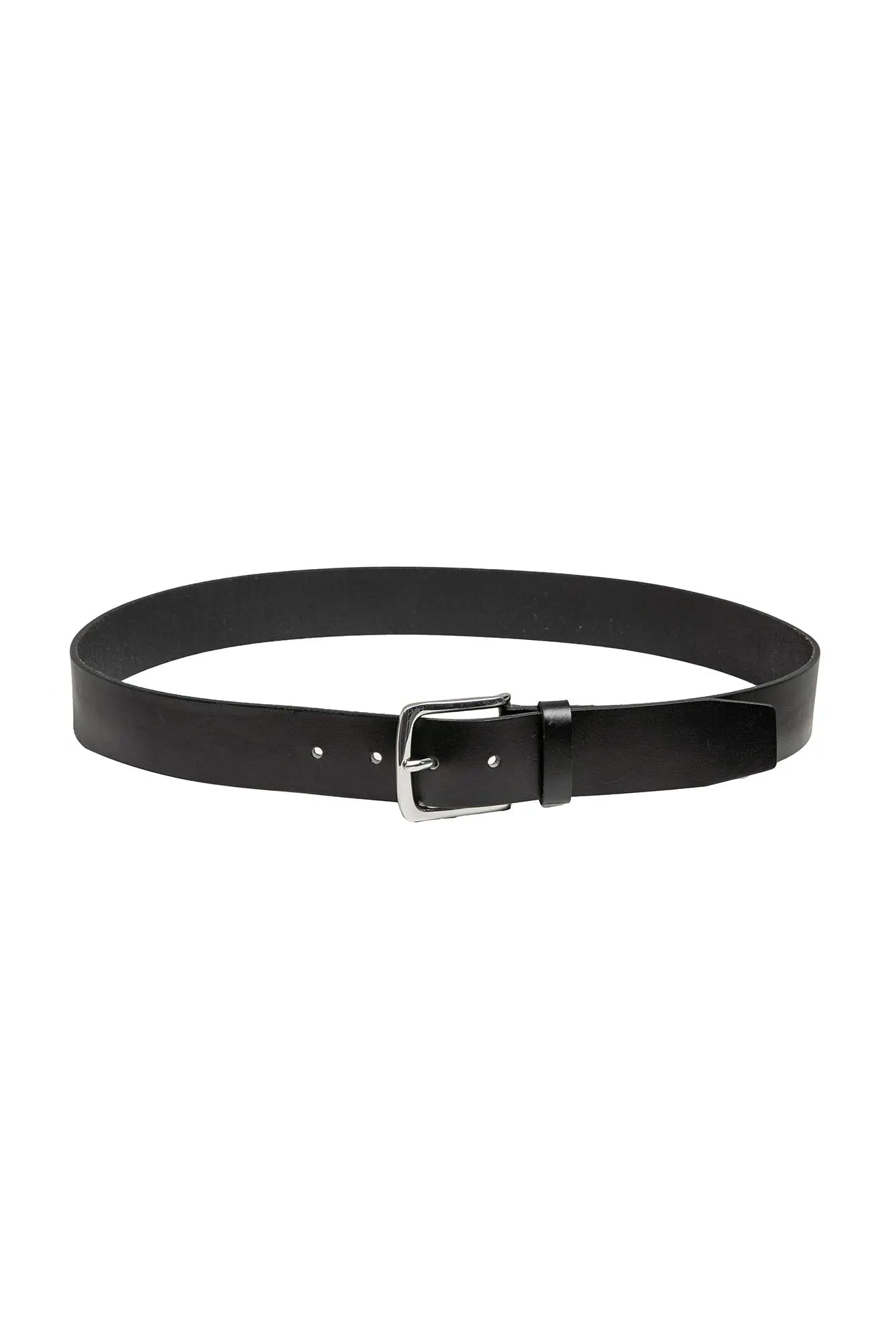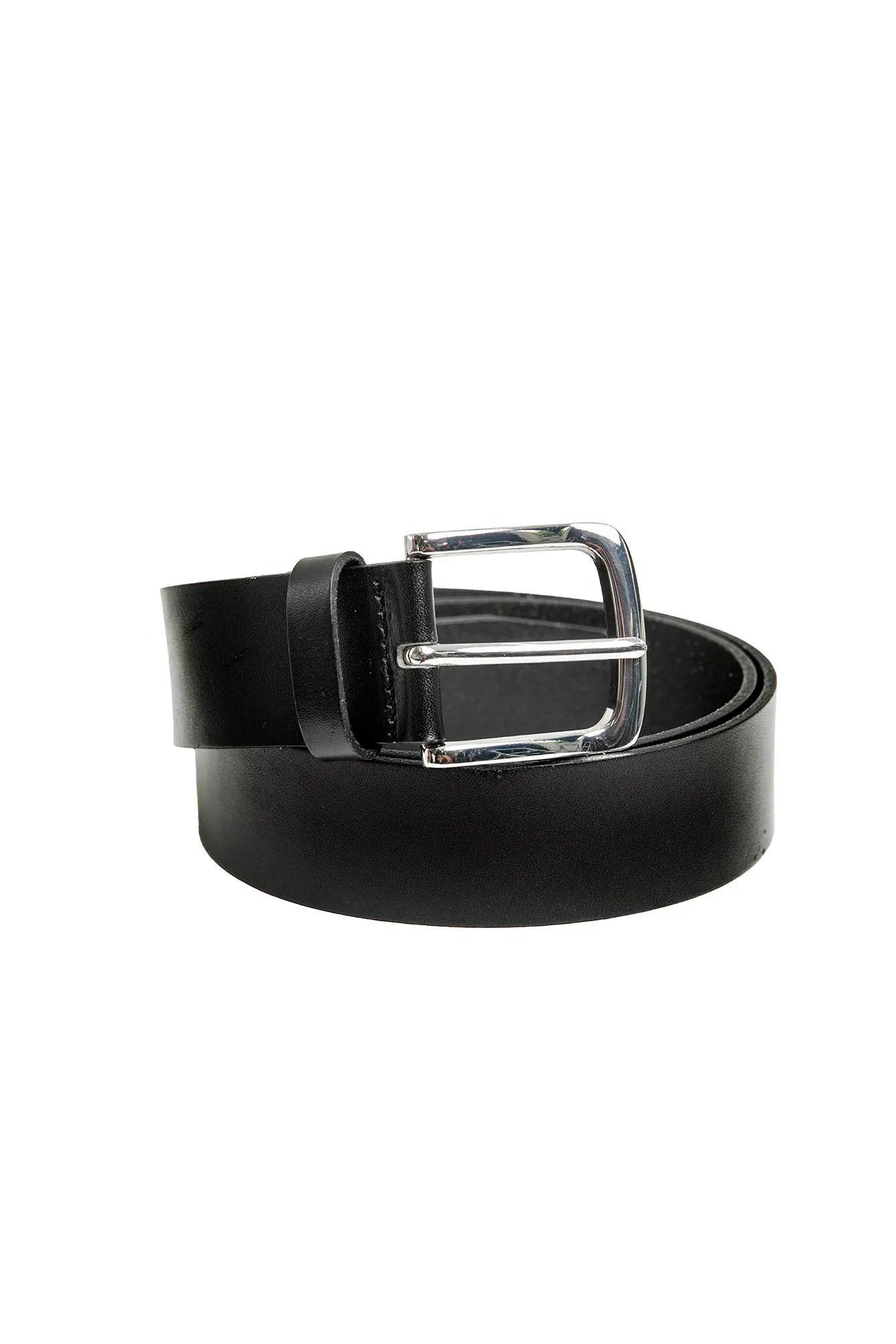 L’intemporalité de la ceinture en cuir noir et boucle argentée, à porter sur n’importe quelle pièce ville ou sportwear.