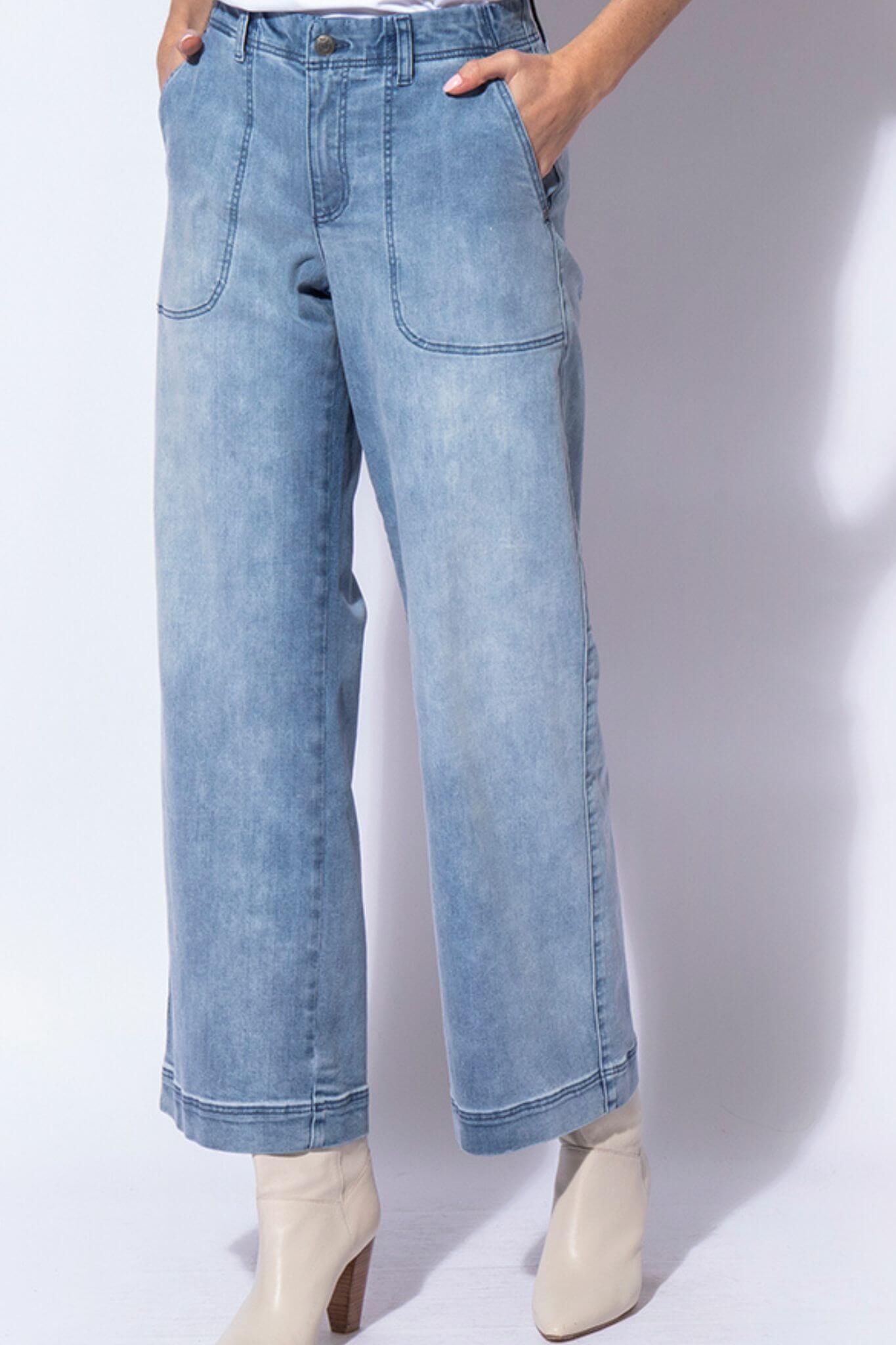 Sa coupe originale et très actuelle avec ses poches plaquées, ses jambes larges jusqu’aux chevilles et son large ourlet. On le porte aussi bien de jour en baskets que de nuit en talons. Il convient à toutes les morphologies.