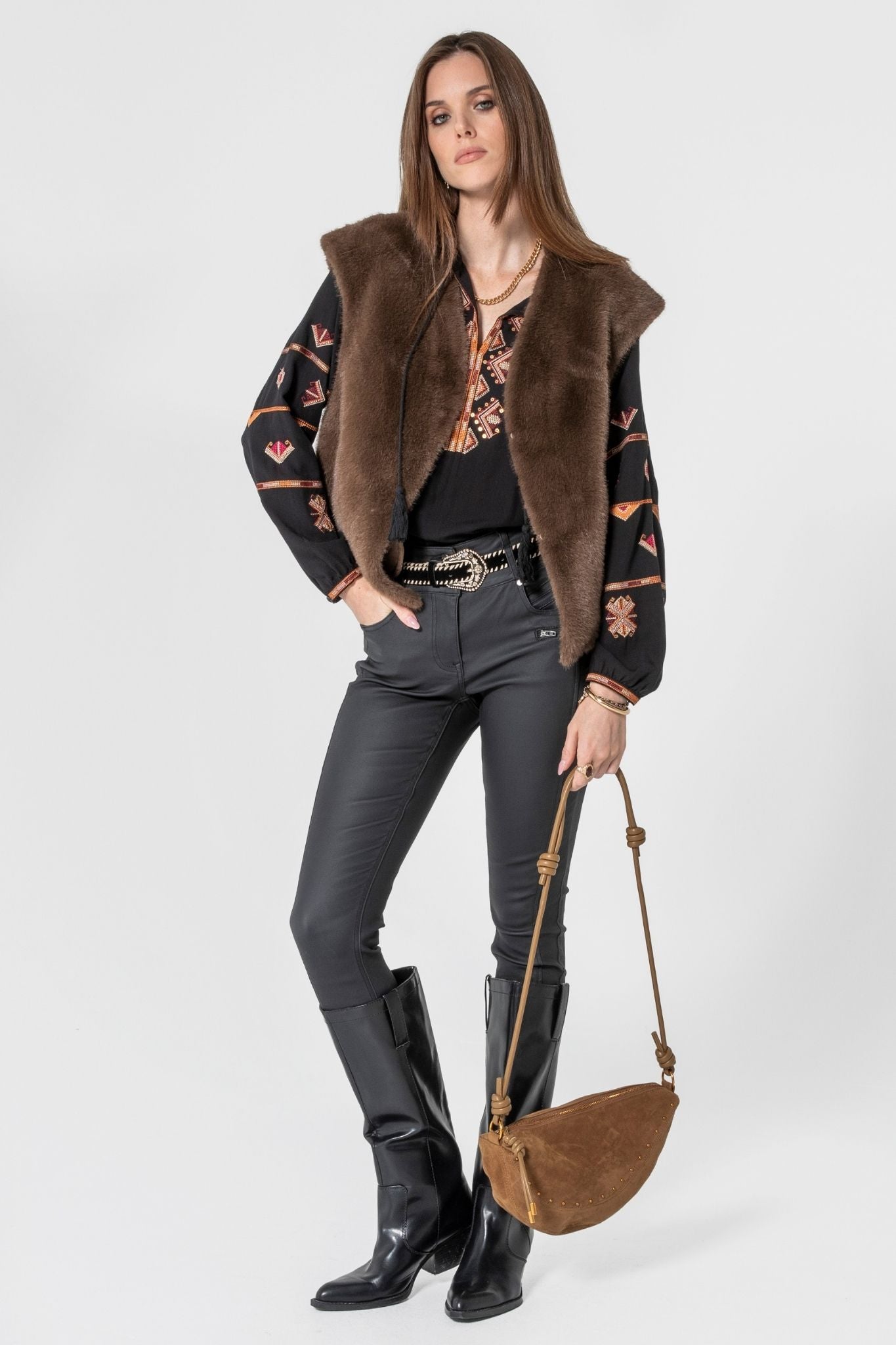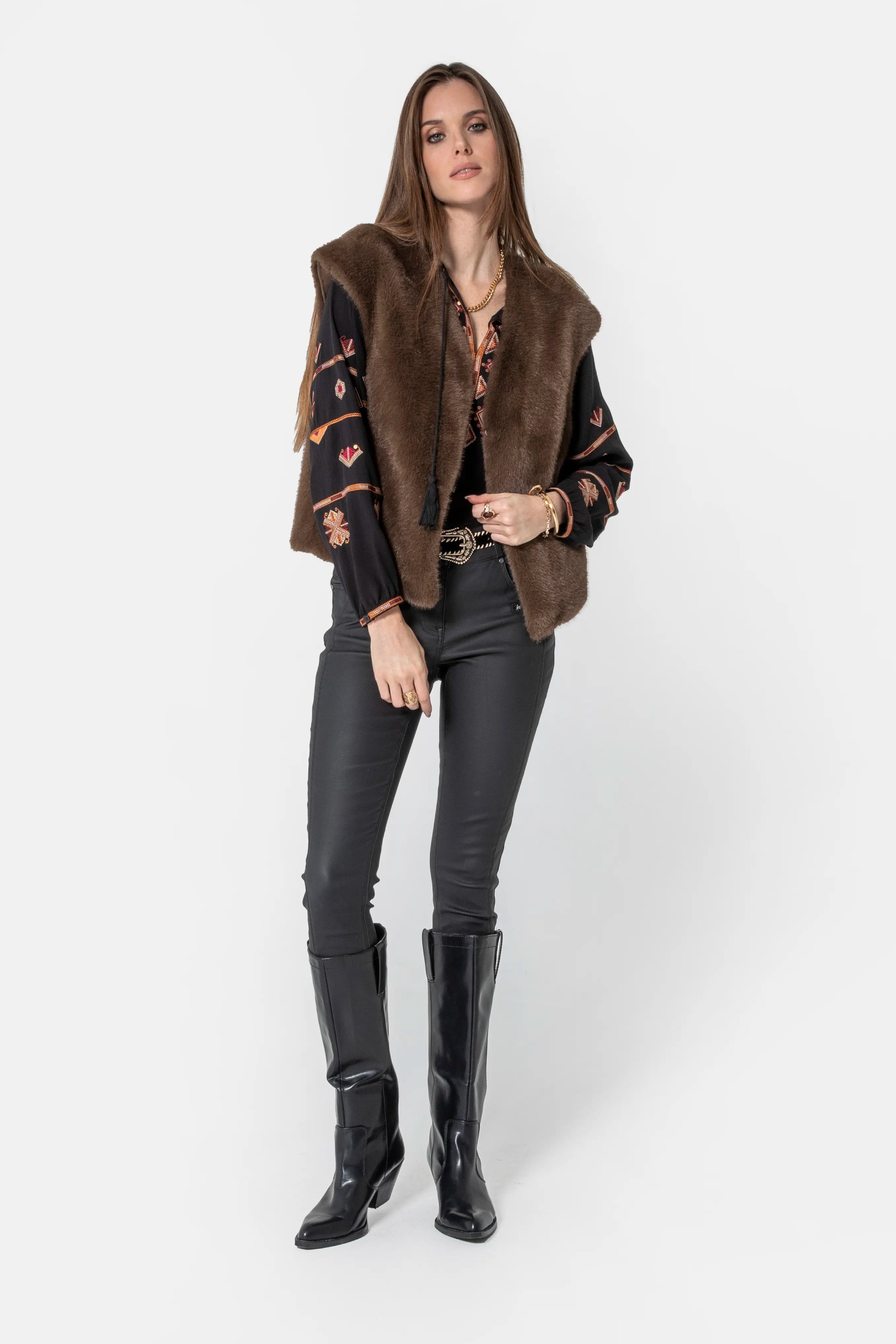 L'incontournable boléro en fausse fourrure, effet vison plus vrai que nature. A porter sans modération sur une robe ou sur une blouse.