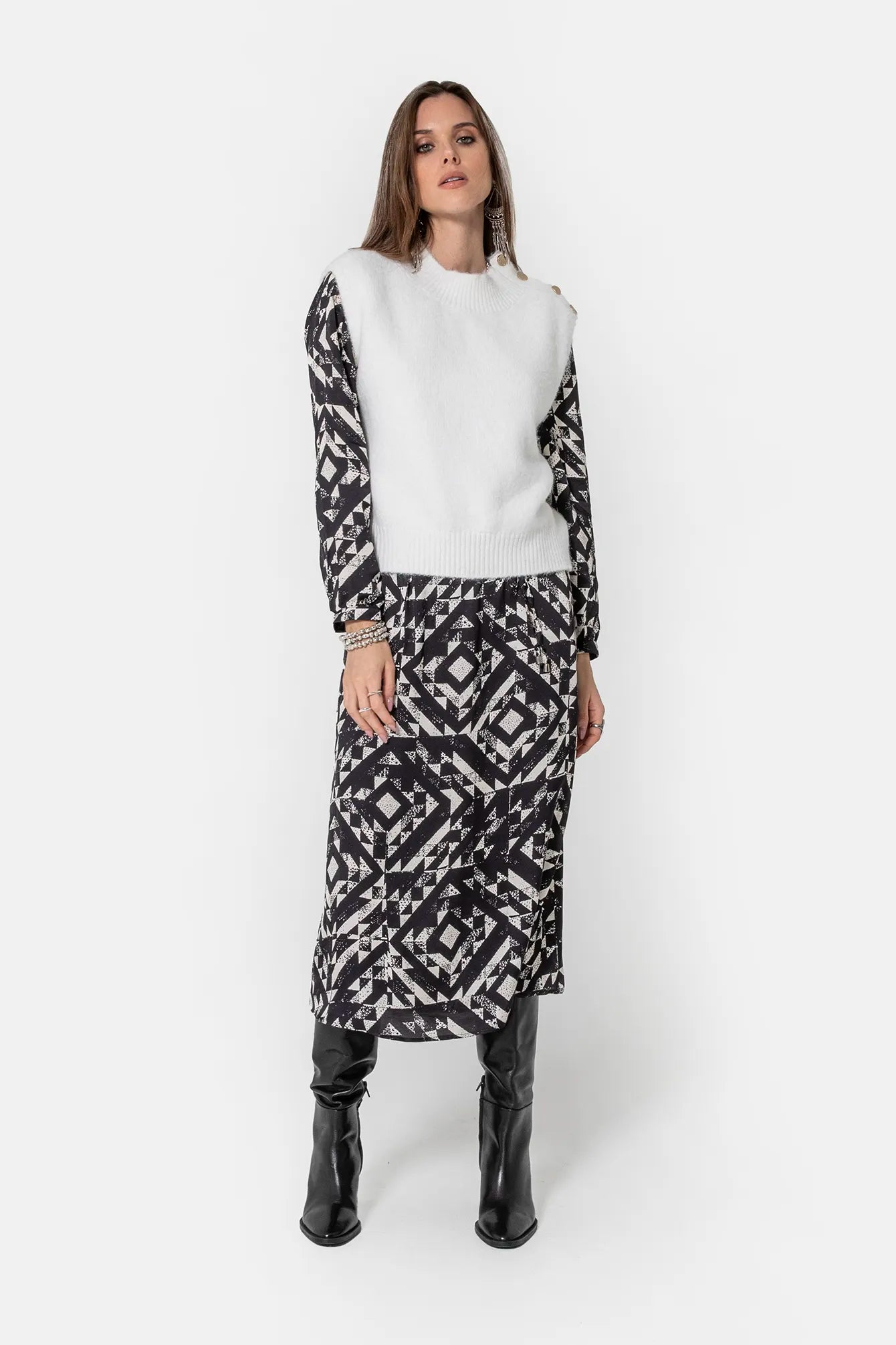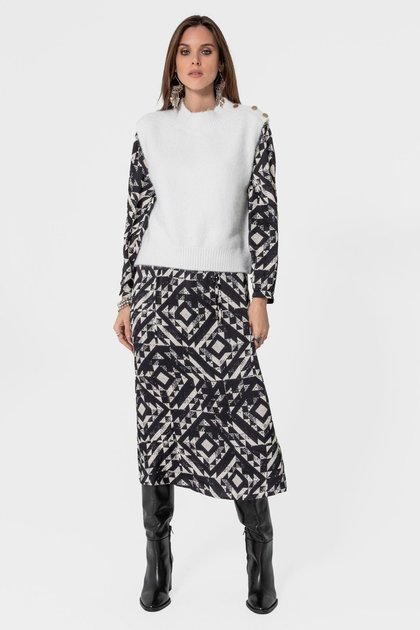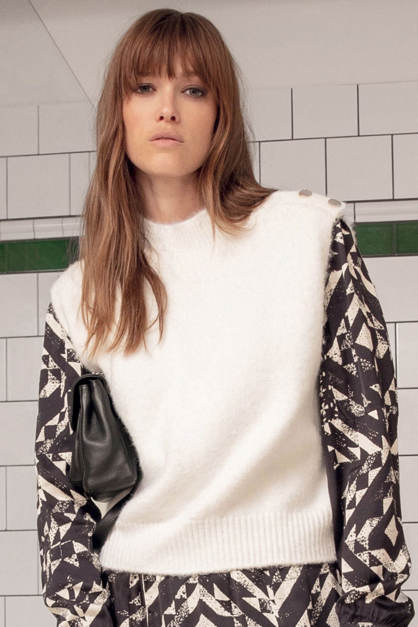 Le petit pull sans manches tout doux et aux boutons bijoux, pour agrémenter vos tenues d'une touche de bien-être et d'élégance.