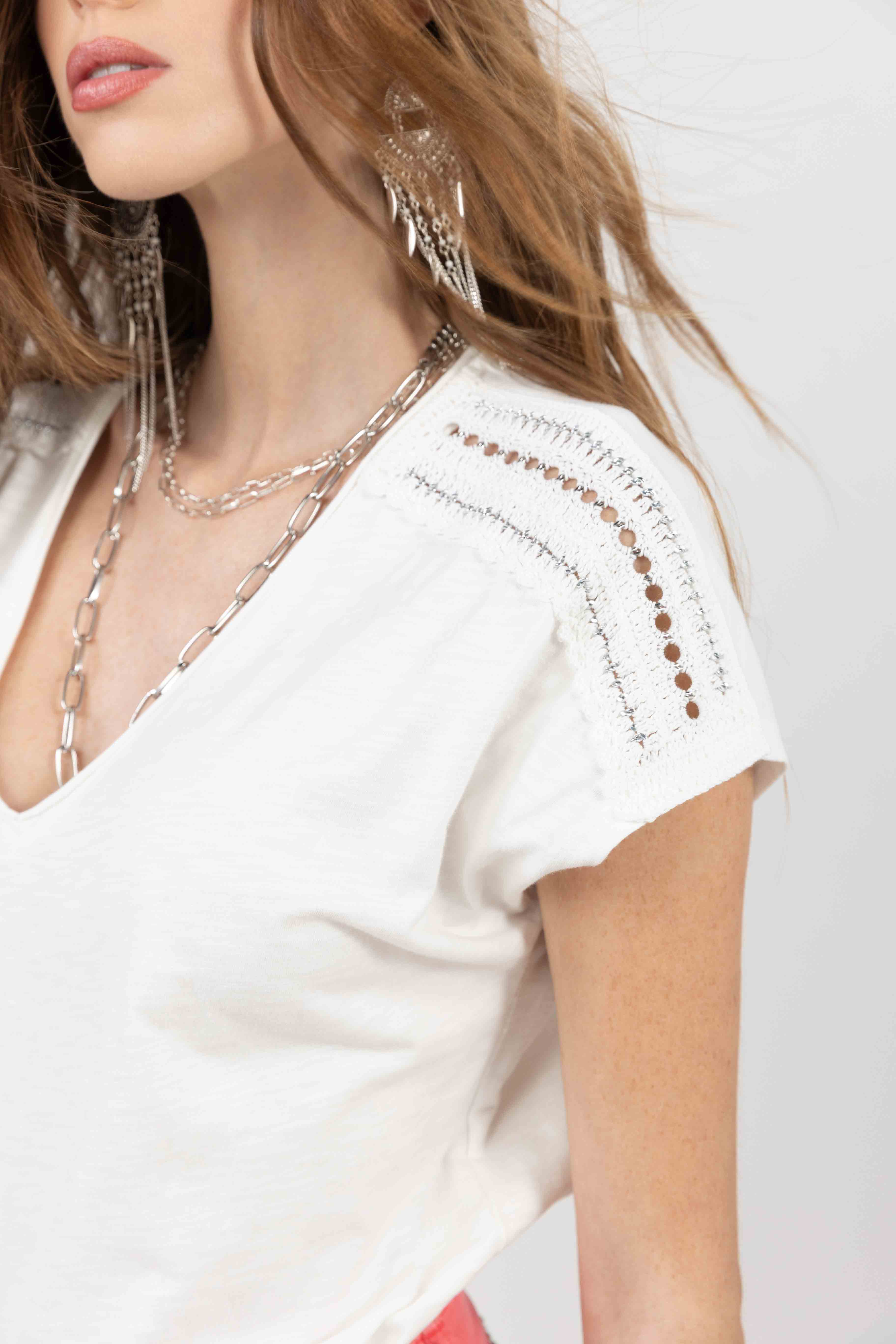 T-shirt écru épaules en crochet