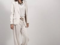 Cette veste tailleur écru et beige affirme une élégance structurée grâce à un jacquard au motif cachemire en camaïeu, imaginé par Elora. Sa coupe légèrement cintrée met la silhouette en valeur tout en conservant une allure naturelle. Le col tailleur et le bouton bijou apportent une touche précieuse, tandis que les poches à rabat renforcent son esprit chic. Portée dépareillée ou en total look, elle devient une pièce clé pour passer du casual au sophistiqué avec aisance.
