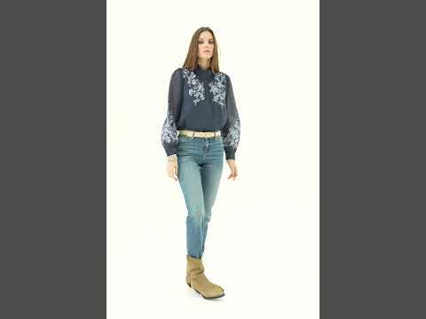 Le combo micro rayures et motif floral placé sur la poitrine et aux bas de manches, pour cette blouse hautement désirable et facile à assortir.