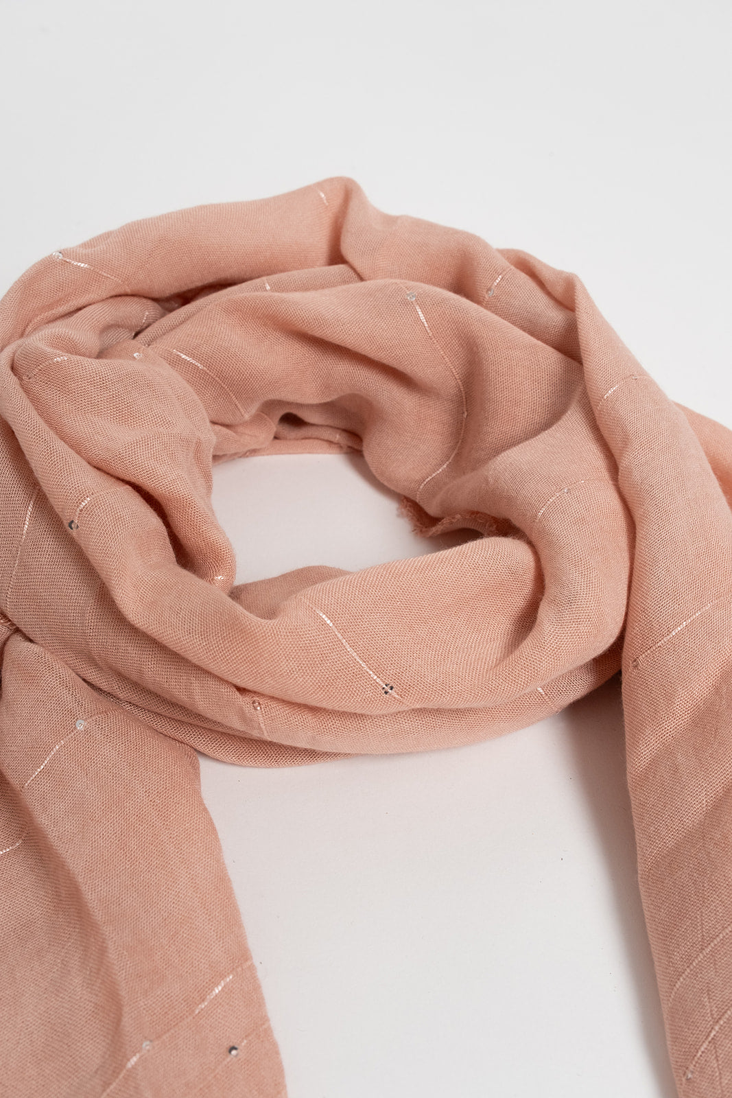 Ce chèche rose illumine le cou avec douceur grâce à ses fils lurex et ses sequins ton sur ton, imaginés par Elora pour apporter une touche lumineuse et féminine. Son coloris poudré s’associe facilement à toutes les tenues, tandis que son format long rectangulaire permet de multiples façons de le porter. Les finitions frangées renforcent son esprit délicat et élégant. Un accessoire raffiné, idéal pour sublimer le quotidien avec légèreté et éclat.