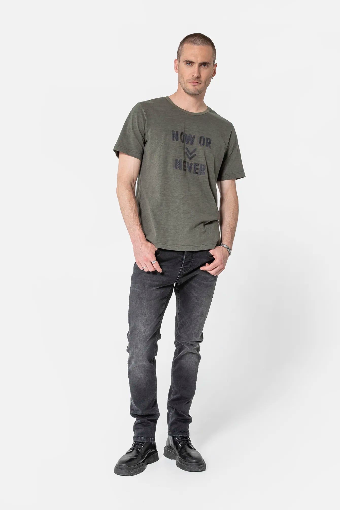 Le jersey flammé, le coloris profond et la broderie totem qui en font un tee-shirt rock et chic.