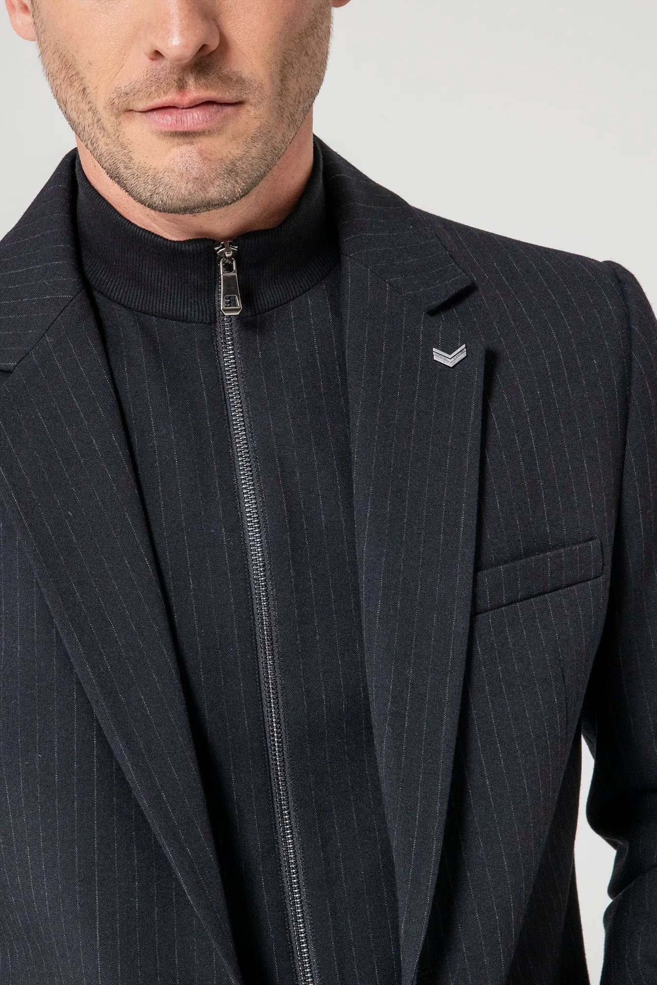 La veste costume que l'on déride d'une sous-veste zippée et col montant. 1 veste, 2 options, on est méga fan !