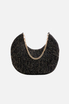 Sa forme lune, associée à la paille noire réhaussée de lurex et sa anse chaîne pour une allure assurée ultra chic. A porter aussi avec du jean pour casser les codes. Sublimez vos tenues avec ce sac à main en forme lune, confectionné en paille noire rehaussée de fils lurex pour un effet scintillant et ultra chic. Son design moderne est complété par une anse amovible en chaîne dorée, offrant une touche élégante et raffinée.