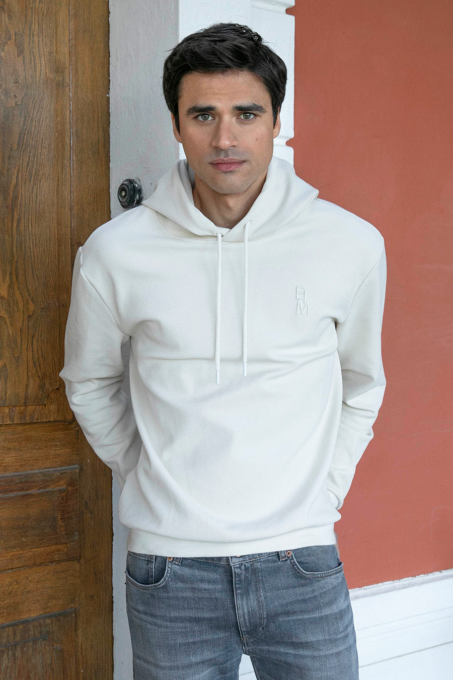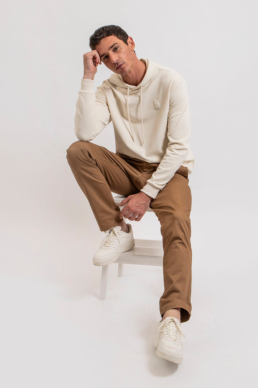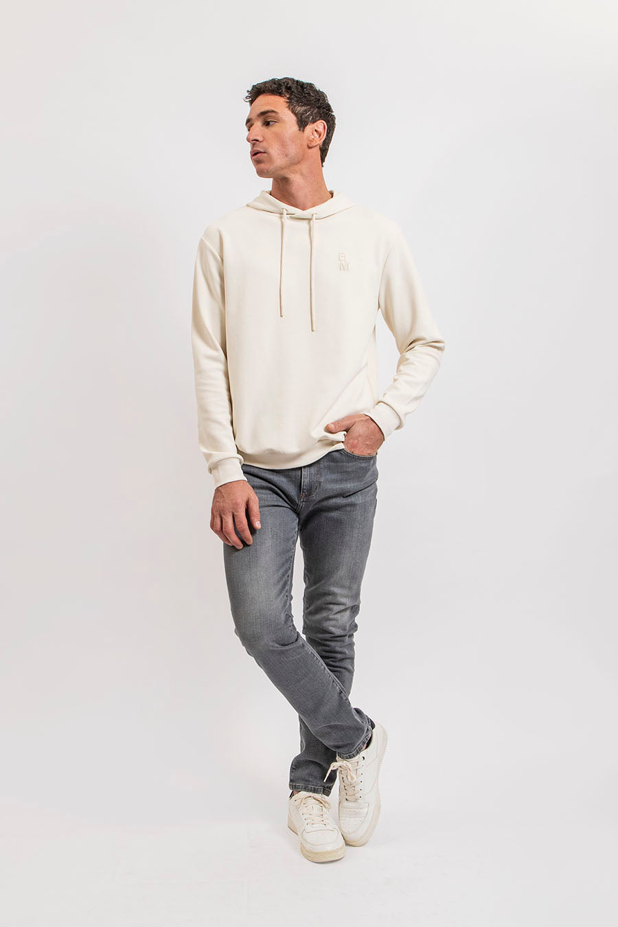 La version écru d'un sweat à capuche inspiré de l'univers du streetwear.