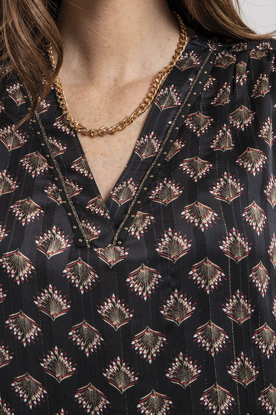 Kurzes Kleid mit schwarzem und bordeauxfarbenem Print
