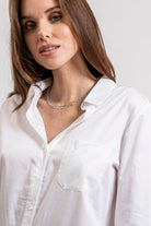 Das ikonische weiße Hemd – mit ein paar rockigen Details wird es noch besser. Das legendäre weiße Hemd, neu interpretiert mit rockigen Akzenten für einen modernen Touch.