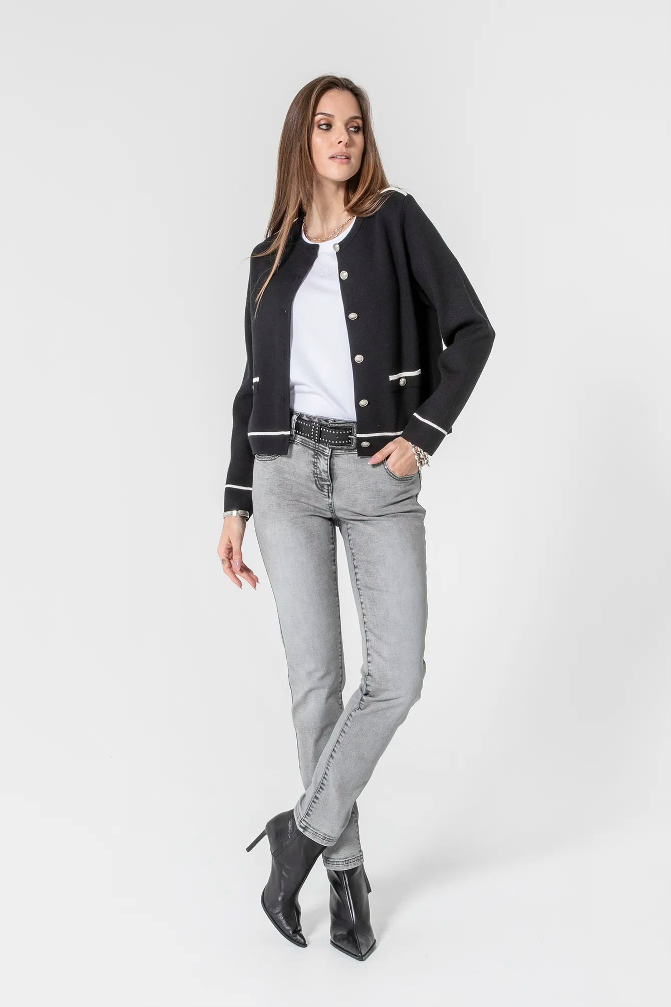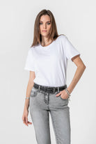 Das weiße T-Shirt mit kurzen Ärmeln – kombiniert mit einer Jeans und einer Jacke, sorgt es mühelos für einen perfekten Look.