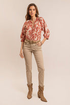 Bluse aus bedruckter Baumwolle in Ziegelrot