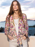 Multicolor-Top mit Schmuckdetail zum Binden