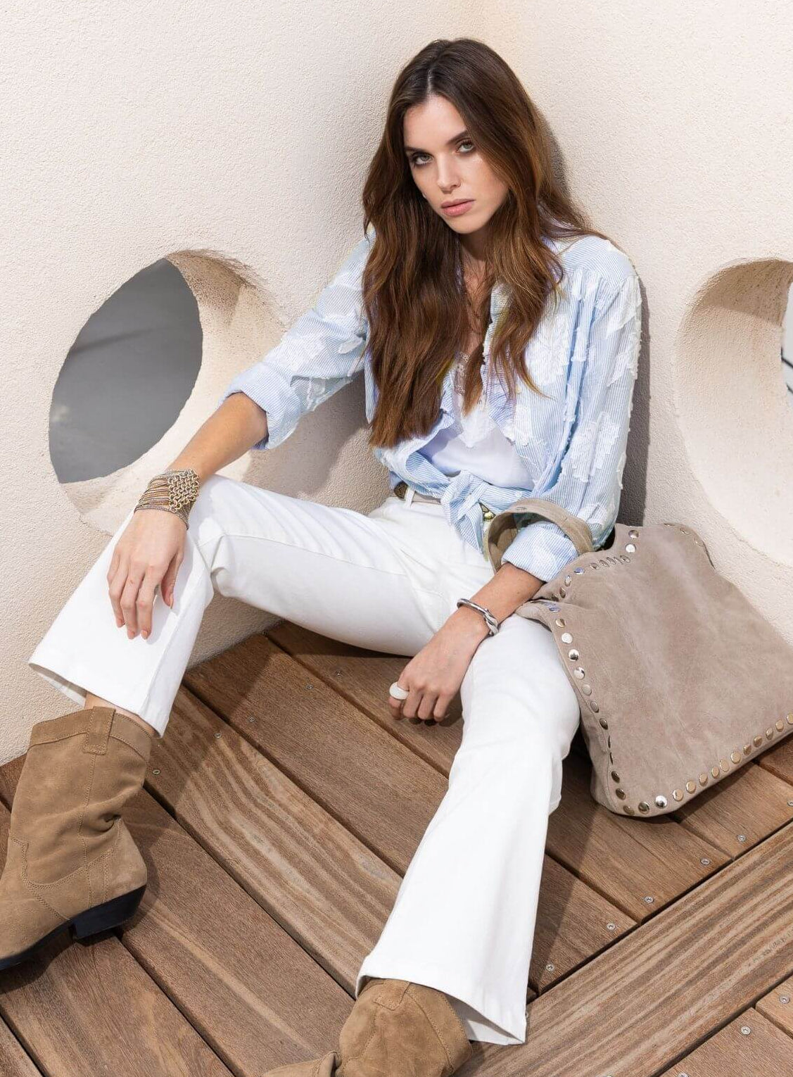 Bij Elora geloven we dat elegantie en verantwoordelijkheid hand in hand gaan. Seizoen na seizoen voegen we meer duurzame materialen toe: biologisch katoen, gerecycled polyester en polyamide, linnen, lyocell... We kiezen ook voor innovatieve processen zoals droog wassen van jeans.