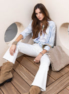 Deze witte jeans geeft een eigentijdse twist aan een tijdloze klassieker, met subtiele elegantie ontworpen door Elora om stijl en comfort te combineren. De bootcut cropped-pasvorm tot op de enkel verlengt het silhouet en zorgt voor een moderne touch. De stretch gabardine biedt dagelijks draagcomfort, terwijl de ton-sur-ton Cornely-borduursels op het dijbeen zorgen voor een verfijnd en delicaat detail. Makkelijk te combineren, wordt dit een chic en stralend item, perfect om vrouwelijke en eigentijdse looks samen te stellen.