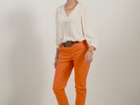 Cette blouse écru séduit par ses broderies délicates et ses perles ton sur ton, imaginées par Elora pour offrir une élégance subtile. Sa coupe droite assure un tombé fluide, tandis que l’encolure en V soulignée d’une large bande brodée met le décolleté en valeur avec raffinement. Les épaules travaillées et les manches bouffantes renforcent son allure féminine. Disponible en deux coloris, elle devient une pièce chic et lumineuse, idéale pour sublimer les tenues du quotidien.