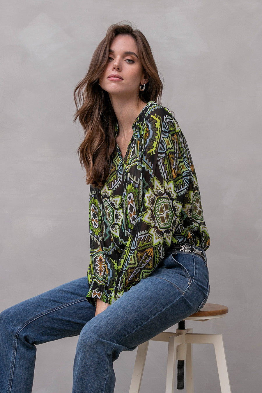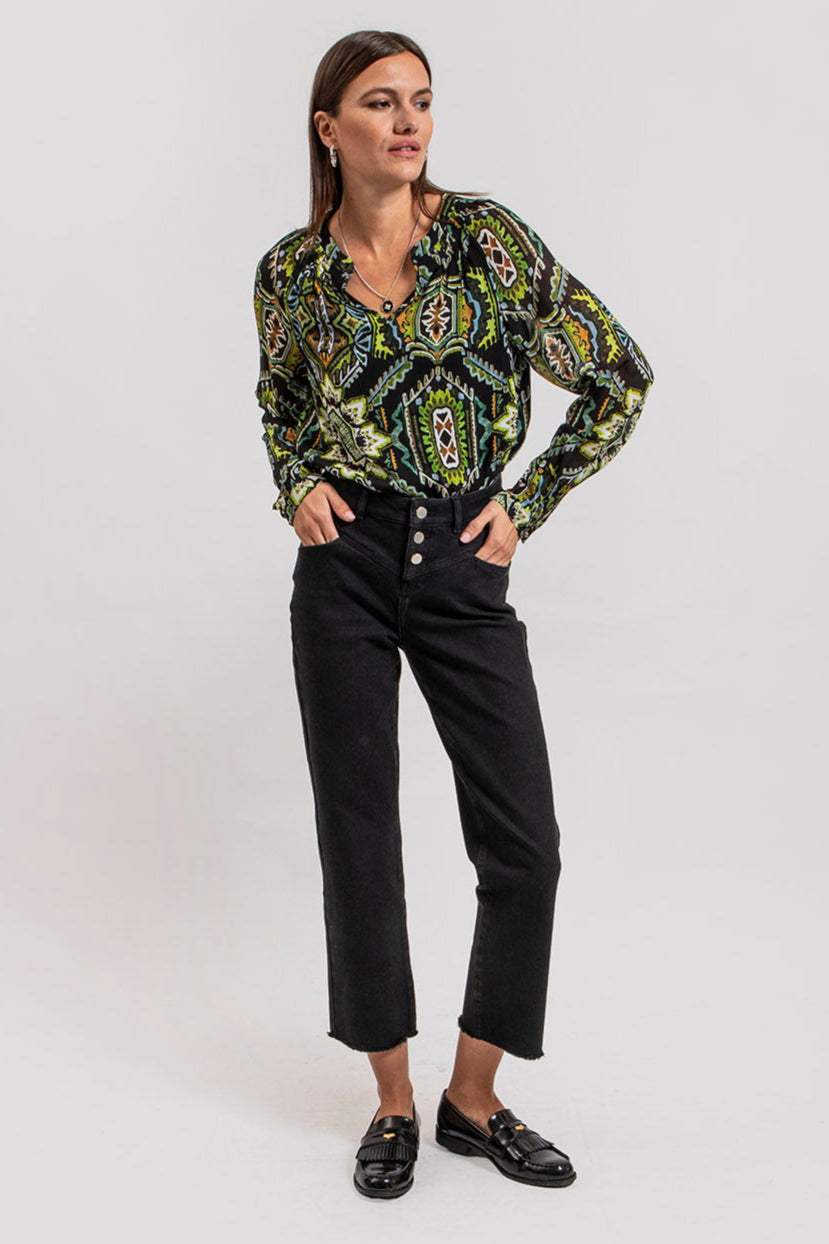 Blouse imprimé azthèque vert et noir