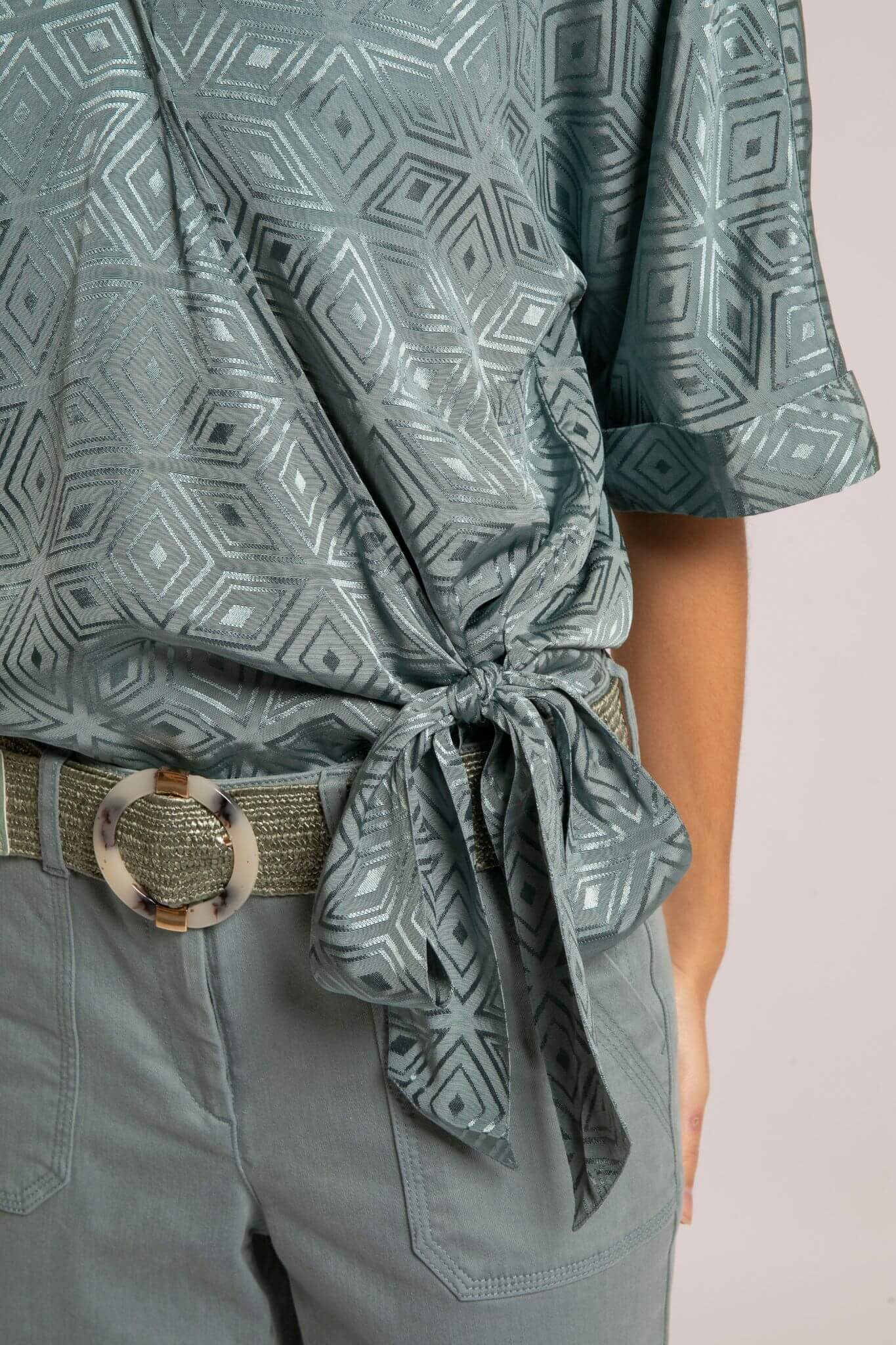 Blouse satinée esprit kimono lagon