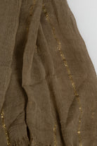 Ce chèche beige illumine les silhouettes avec subtilité grâce à ses fils lurex dorés délicatement intégrés. Imaginé par Elora, il séduit par sa teinte naturelle facile à assortir et son format long rectangulaire, idéal pour varier les portés. Les finitions ourlées et les franges apportent une touche bohème élégante. Léger et agréable à porter, il devient l’accessoire parfait pour rehausser une tenue du quotidien avec une note lumineuse et raffinée.