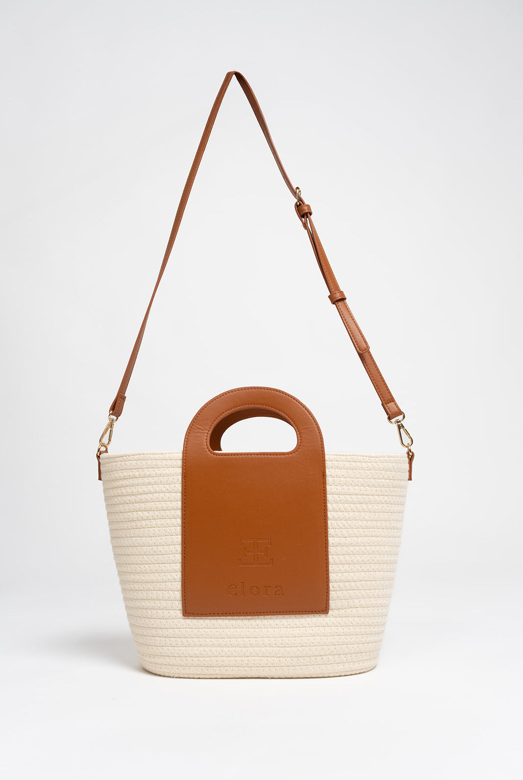 Sac panier écru camel coton tressé
